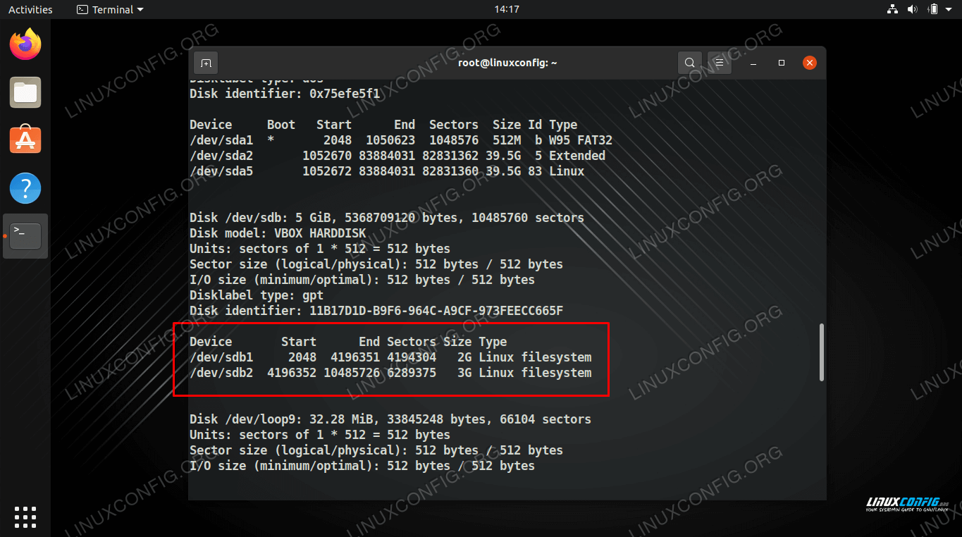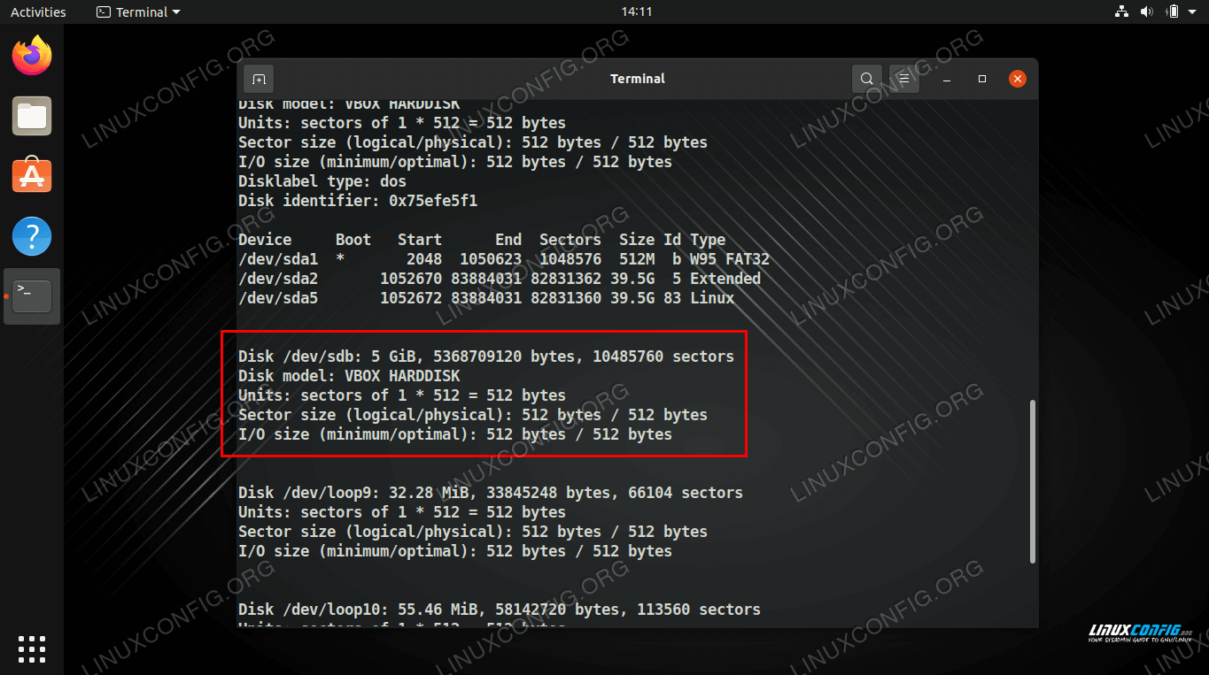 在此示例中,我们将使用的磁盘是 /dev/sdb
