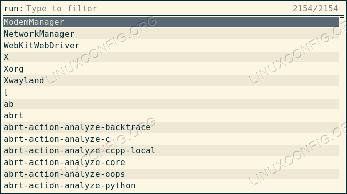 就像在“窗口”模式下一样,我们有一个输入字段,可以用来过滤列表中的元素。要启动应用程序,我们只需选择它并按 Enter 键即可。