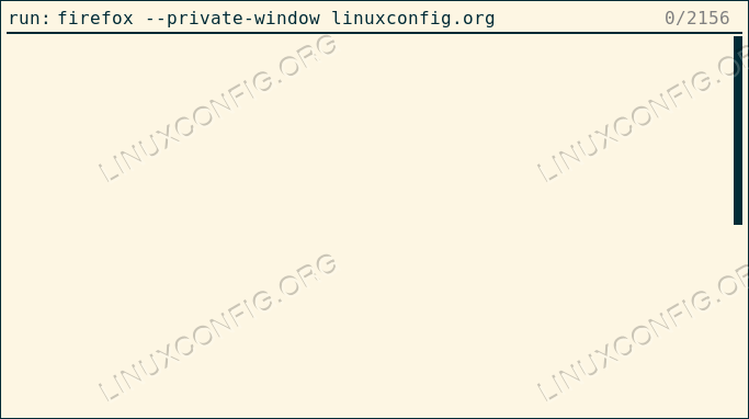 同一字段还可用于手动输入将执行的特定命令。举例来说,我们想以“私有模式”运行 Firefox;我们必须使用 --private-window
