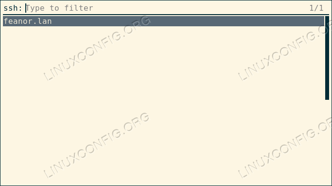 正如我们在上面的屏幕截图中看到的,过滤器输入可以再次用于快速过滤列表中的条目。它还可用于手动键入要连接的用户/地址。例如,假设我想以“egdoc”用户的身份访问具有 192.168.0.39