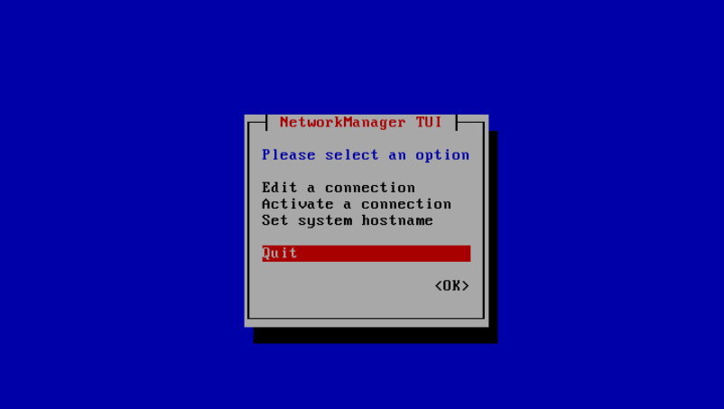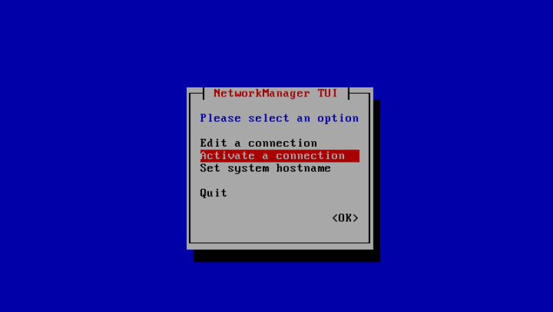 为 RHEL 8 配置静态 IP 地址的另一种方法是使用 nmtui 工具,它是一个文本用户界面 (TUI)。要使用它,只需在终端中输入以下命令即可。