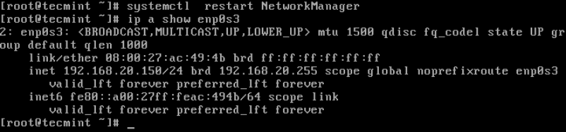 现在您可以使用 ip 命令检查新的 IP 地址,如图所示。