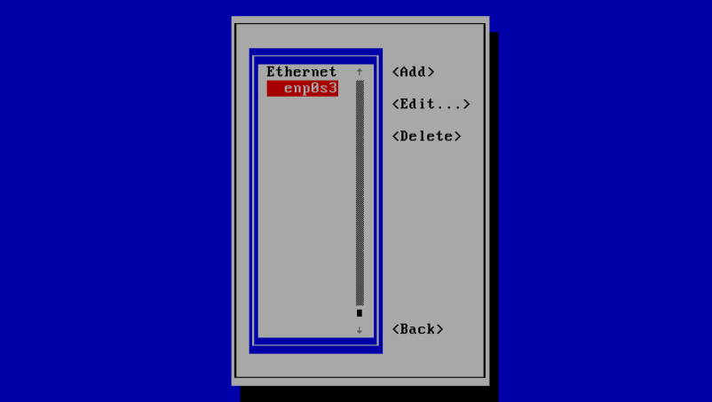 在下一个窗口中,您将能够通过使用键盘上的箭头键移动光标来编辑网络接口设置: