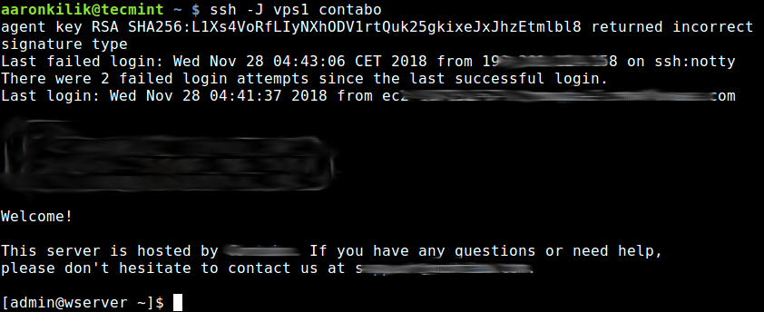 上述命令将首先在受ProxyCommand影响的后台打开到vps1的ssh连接,然后启动与目标服务器contabo的ssh会话强>。