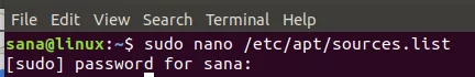 打开 /etc/apt/sources.list 文件以手动将存储库链接添加到列表中。要打开 resources.list 文件,请在终端中以 root 身份运行以下命令: