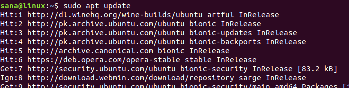 添加并识别存储库后,让我们通过以下命令更新系统上的软件包列表:
