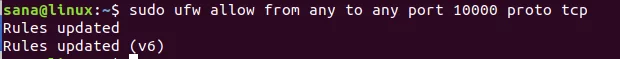 注意:如果您的系统启用了 UFW,您可以使用以下命令允许来自任何源的传入流量到达 TCP 端口 10000: