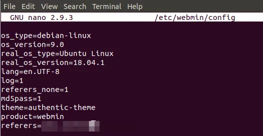 下一步是将您的域名添加到 Webmin 配置中允许的域列表中。通过以下命令打开文件: