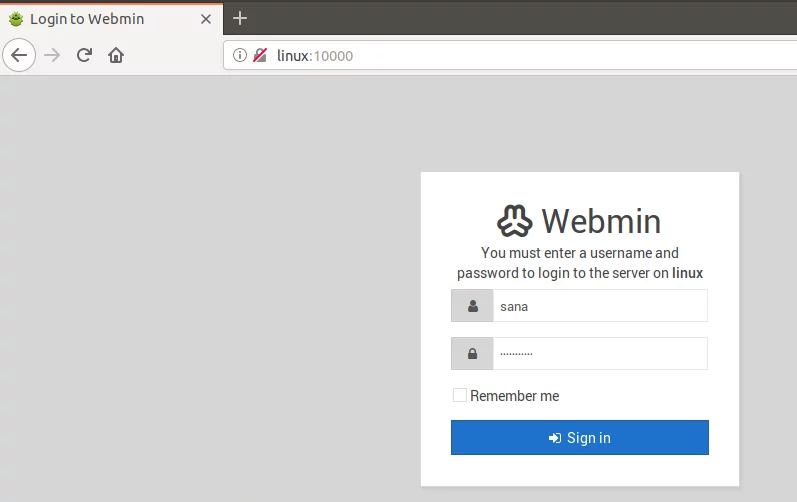 - http://linux:10000(这是 Webmin 安装完成后从输出中获得的链接)