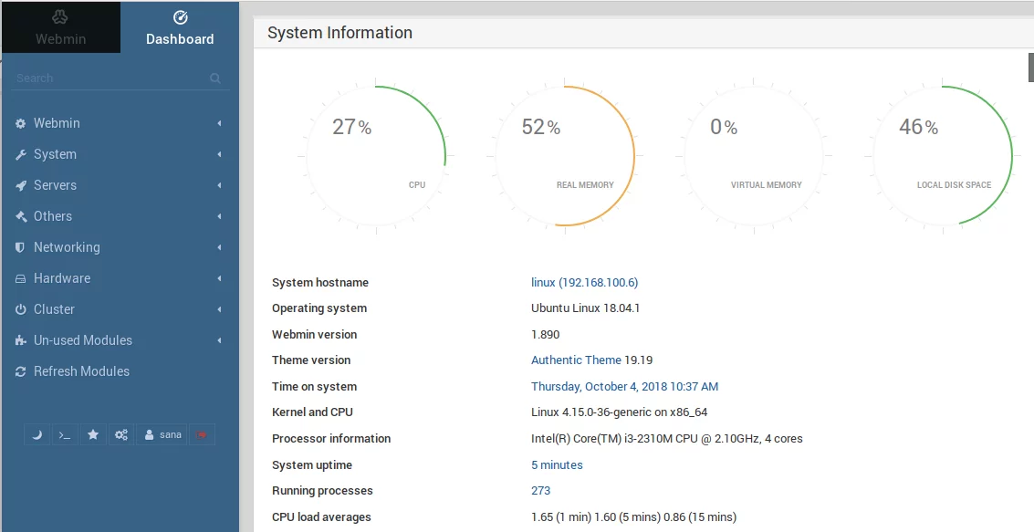 您可以通过此 Webmin 控制台管理用户和更新包等: