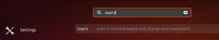 方法 2:访问用户设置的另一种方法是通过 Ubuntu Dash。在仪表板中输入相关关键字,例如“用户”,然后点击“用户”搜索结果。