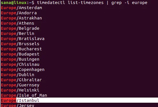 在此示例中,我们将时区设置为欧洲/伊斯坦布尔。首先,让我们通过以下命令取消系统时间与本地时间的链接:
