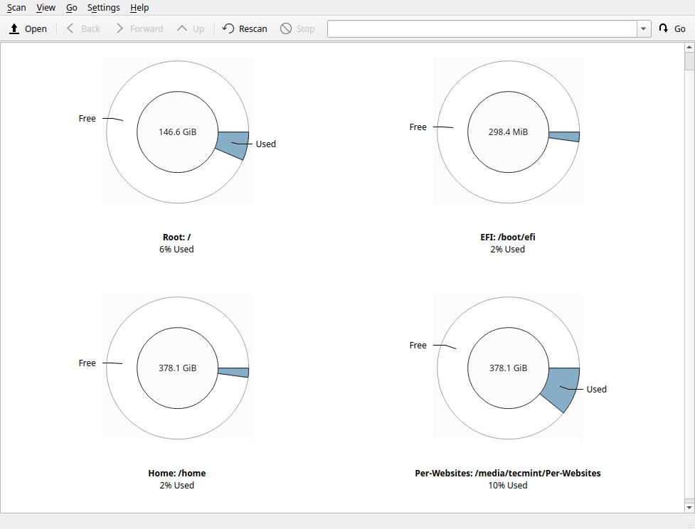 Filelight 是一个免费、开源、简单、易于使用的跨平台 KDE 实用程序,用于查看图形磁盘空间使用信息。它适用于 Linux 发行版和 Windows 操作系统。它是一个磁盘分析器,将文件系统输出为一组同心分段环,以帮助您查看磁盘使用情况。