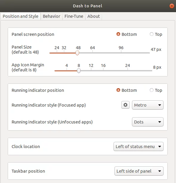 通过以下窗口,您可以更改时钟的位置、面板的位置、面板的大小和图标边距等: