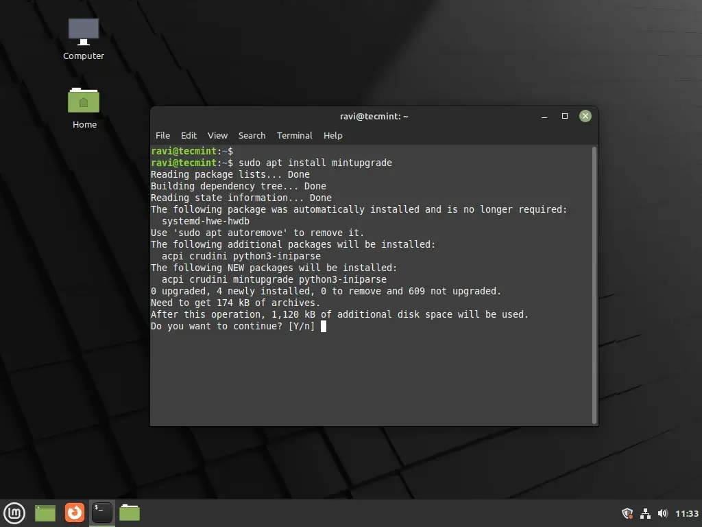 sudo apt install mintupgrade