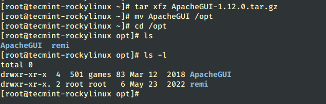 3. 压缩包下载后,解压并将整个目录移动到 /opt 系统路径,该路径将是 Apache GUI Server 的安装位置.