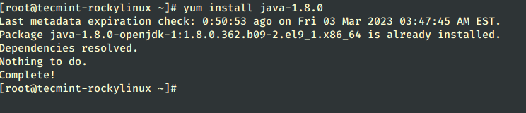 使用以下命令在基于 RHEL 和基于 Debian 的发行版上安装 Java-openjdk 软件包。