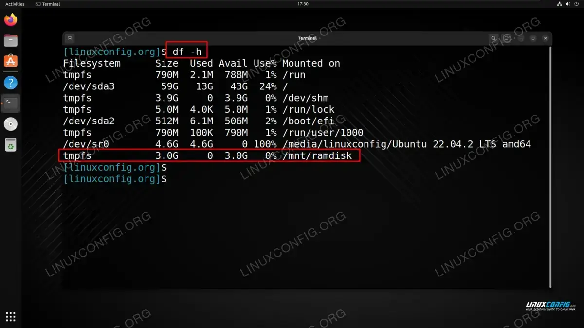 现在您可以开始将文件复制到 RAM 磁盘。如果您使用与上面相同的命令,则应该可以在 /mnt/ramdisk 目录中访问 RAM 磁盘。