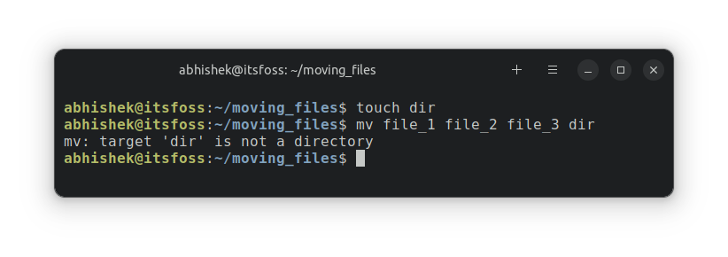 如果要移动多个文件,最后一个参数必须是目录。否则,你会遇到这个错误: