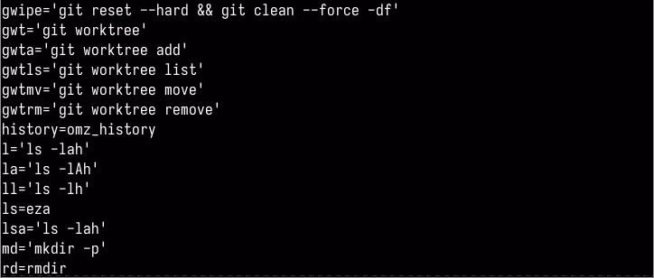 如果您好奇,可以很简单地查看终端中已存在哪些别名。只需键入不带任何参数的 alias