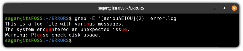 例如,在这里我使用扩展的正则表达式来查找文件中一起使用的两个元音: