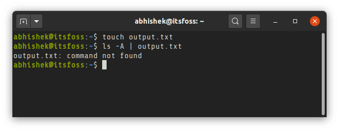 您可能熟悉管道重定向。您可以使用它来组合 Linux 命令,但不能将输出通过管道传输到文件。它将导致 filename 命令未找到的错误: