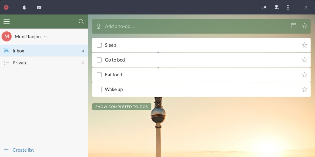 wget -O - https://raw.githubusercontent.com/edipox/wunderlistux/master/bin/install.sh | sudo bash就这样。您对这个Linux 奇妙清单客户端有何看法?让我们知道。