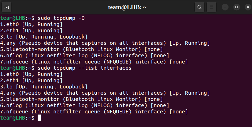 sudo tcpdump --list-interfaces