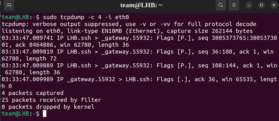 sudo tcpdump -c 4 -i eth0