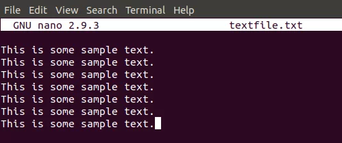复制的文本将粘贴到您的 Nano 文本文件中,如下所示: