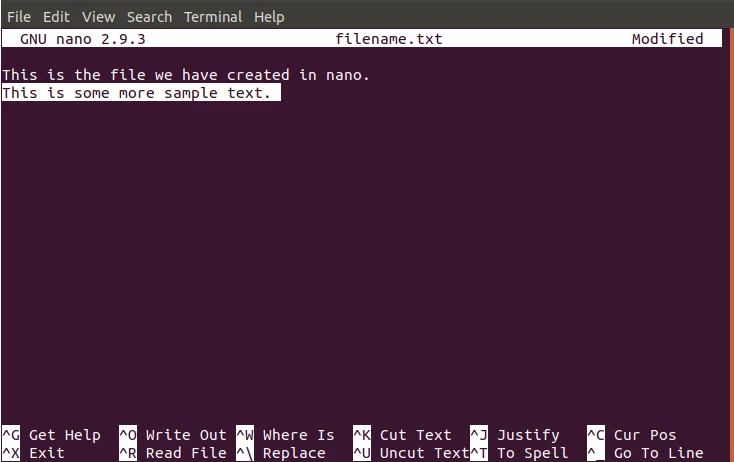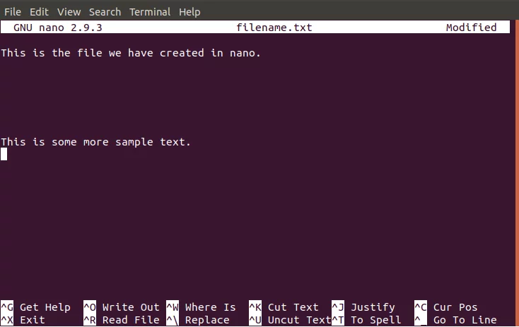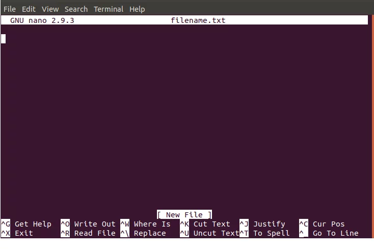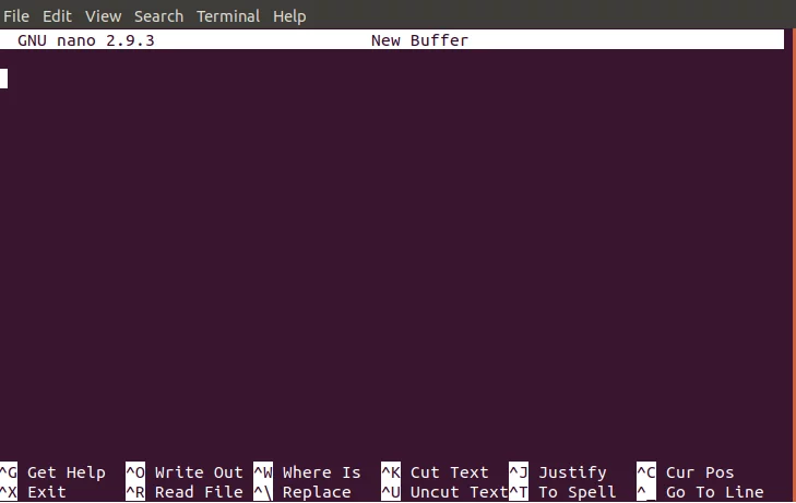 注意:如果您打开了一个新文件/缓冲区而没有仅使用命令“nano”对其进行命名,则可以在保存文件时对其进行命名。请参阅保存文件部分了解更多信息。