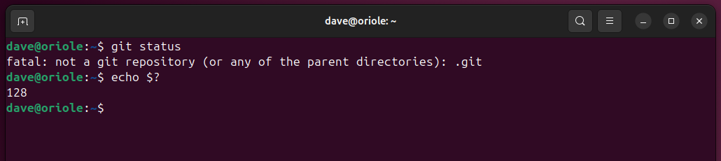 有一个名为 git status 的 git 命令。这会报告 Git 存储库的状态。如果命令失败(就像没有要报告的存储库一样),其退出值为 128。