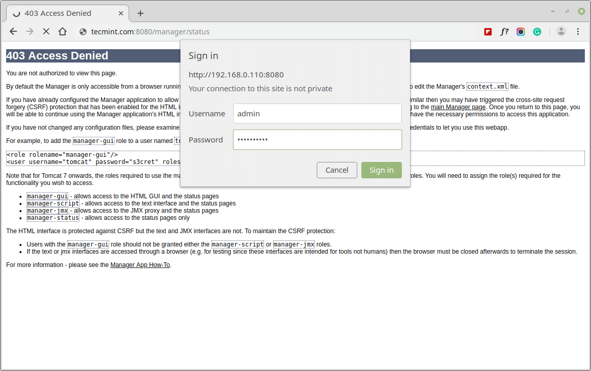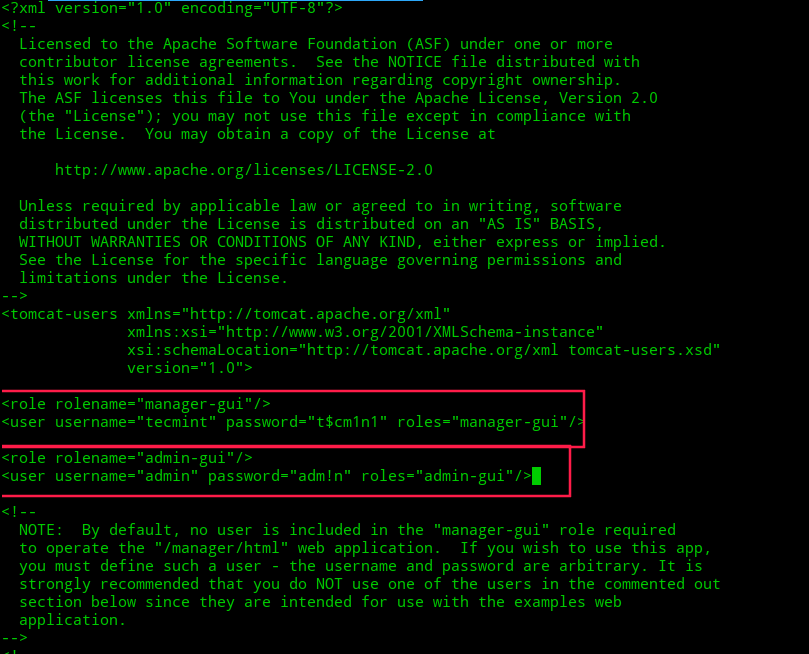 <user username="tecmint" password="t$cm1n1" roles="manager-gui"/>