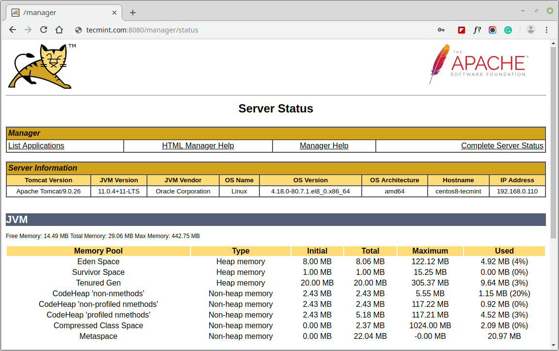 如何在 CentOS 8/7 中安装和配置 Apache Tomcat 9