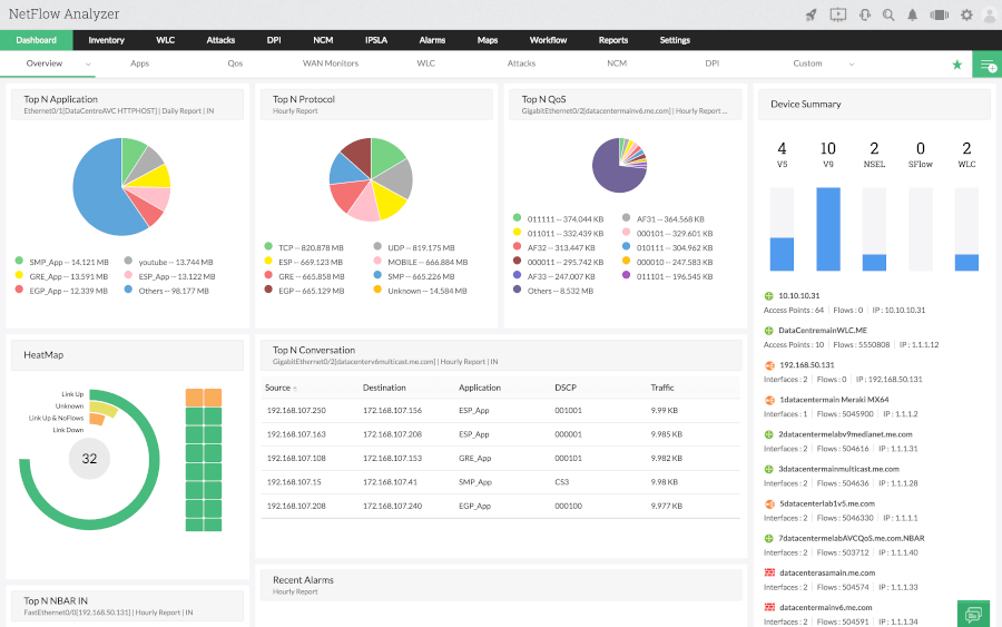 ManageEngine NetFlow Analyzer是一种基于流的带宽监控解决方案,提供多供应商支持。它监控您的网络,分析流量模式,并检测和诊断带宽占用情况。