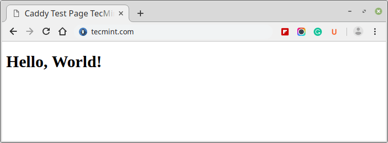 echo '<!doctype html><head><title>Caddy Test Page at TecMint</title></head><body><h1>Hello, World!</h1></body></html>' | sudo tee /var/www/html/index.html