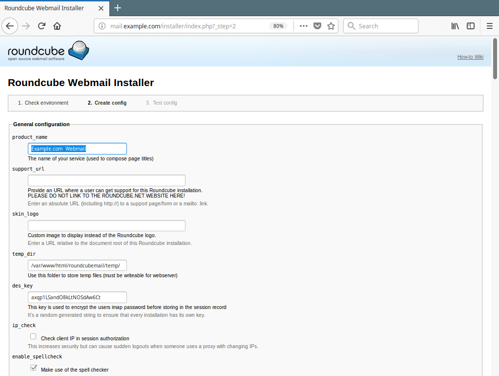 17. 配置页面允许您设置 Roundcube 实例。我们将仅解释本指南范围内的重要选项。