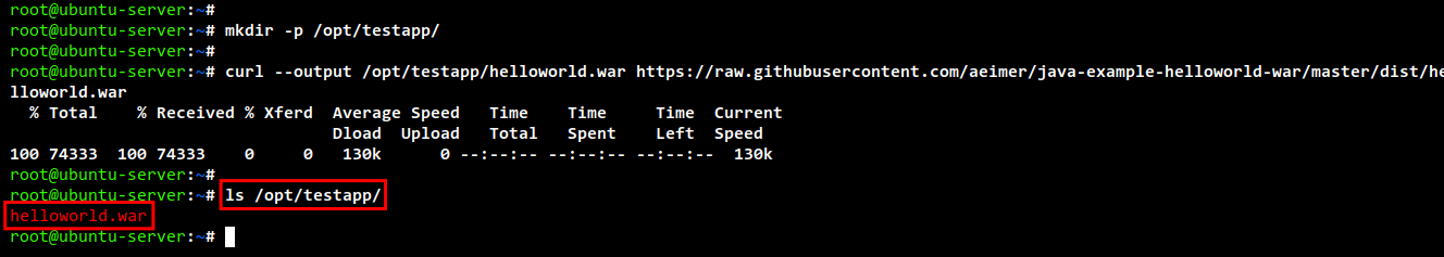 curl --output /opt/testapp/helloworld.war https://raw.githubusercontent.com/aeimer/java-example-helloworld-war/master/dist/helloworld.war