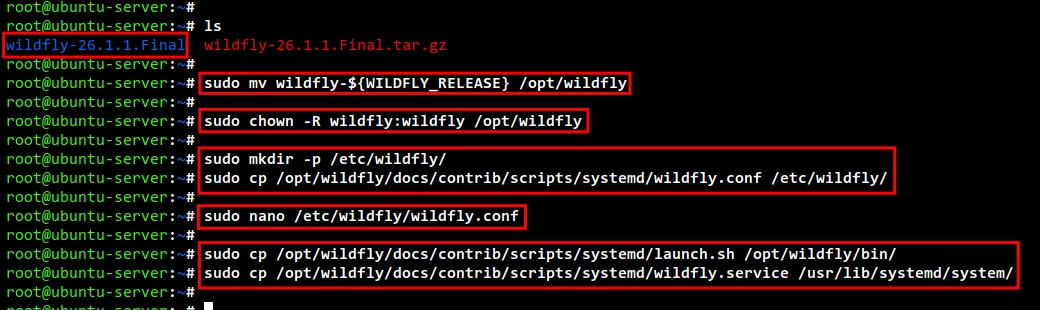 sudo mv wildfly-${WILDFLY_RELEASE} /opt/wildfly
