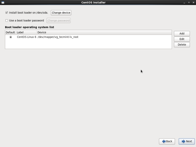 14.现在告诉安装程序安装引导加载程序(请记住,您可以指定默认选择之外的其他设备),然后单击下一步开始实际安装文件(将 ISO 映像复制到磁盘)。