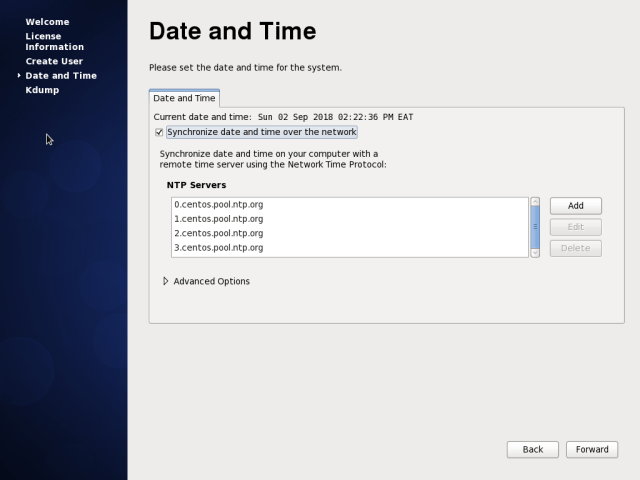 19. 接下来,为您的系统设置日期和时间。建议通过网络同步数据和时间。完成后,点击转发。