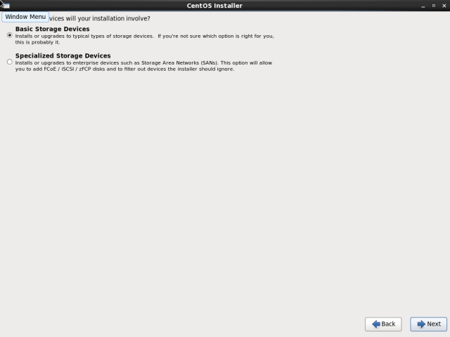 6.选择要用于安装的存储设备类型(基本或专用),然后单击下一步。