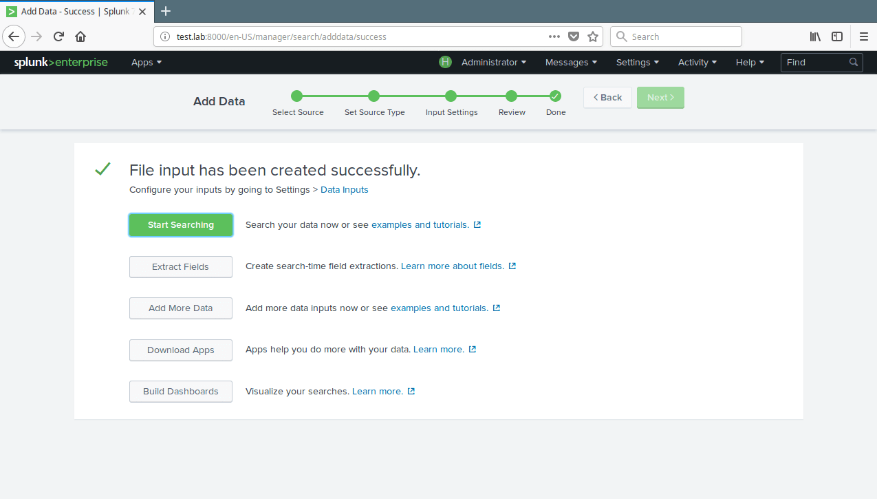 从现在开始,您可以添加更多数据源(使用 Splunk Forwarder 进行本地或远程)、探索您的数据和/或安装 Splunk 应用程序以增强其默认功能。您可以通过阅读官网提供的 splunk 文档来完成更多操作。