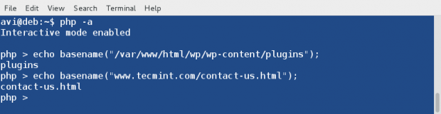 然后将任何内容(例如 Hi Tecmint ::)设置为 PHP 交互式 shell 命令提示符,如下所示: