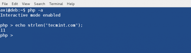 12. 使用 PHP 交互式 shell 打印 howtoing.com 字符串的长度