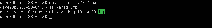我们可以看到“/tmp”的权限字符串是drwxrwxrwt,它的所有者和组所有者都是“root”。