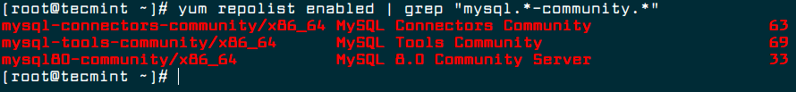 dnf repolist enabled | grep "mysql.*-community.*"      [On Fedora versions]