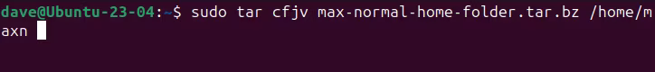 sudo tar cfjv max-normal-home-folder.tar.bz /home/maxn