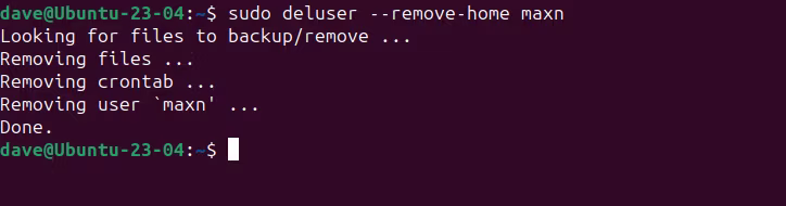 Ubuntu 和其他 Debian 派生发行版具有 deluser 命令来从系统中删除用户。不基于 Debian 的发行版则使用 userdel 命令。
