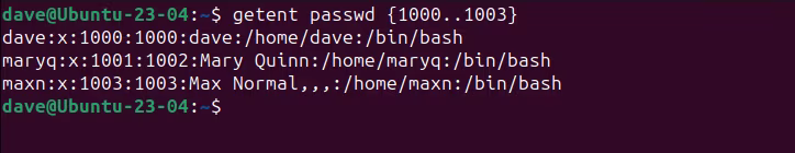 1000 到 60000 之间的任何数字都是有效的人类帐户。这台计算机上满足这些条件的最高值是 1003。将该值插入到我们的 getent 命令中可以显着加快速度。